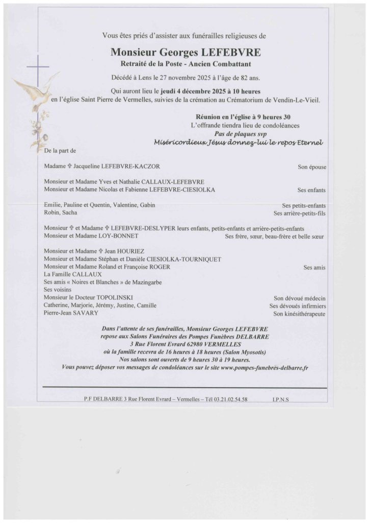 Décédé à LENS le 27 novembre 2025 à l’âge de 82 ans.